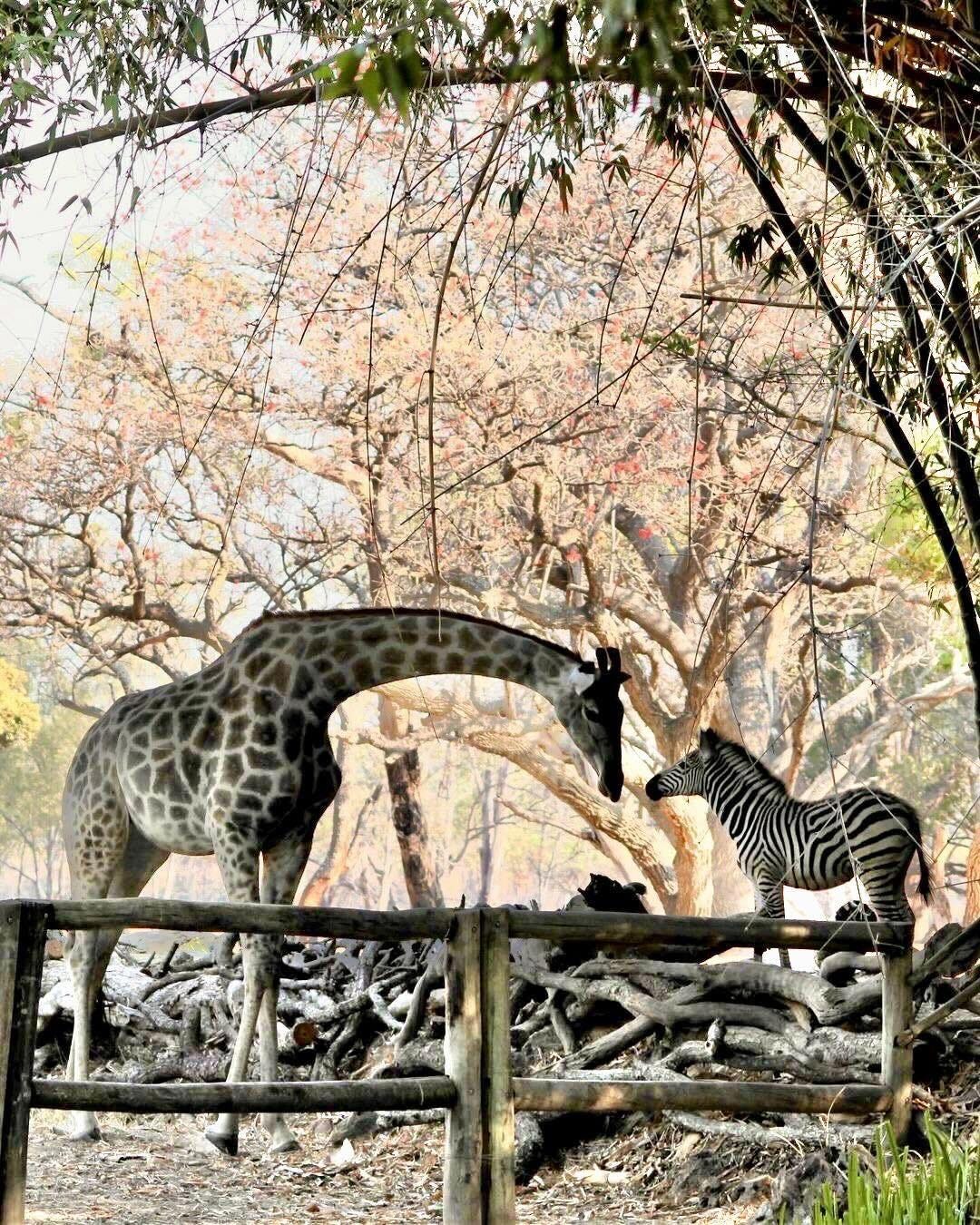 This week in Zimbabwe at Wild is Life: James the young Zebra bids good morning to Skye the giraffe. Exquisite!