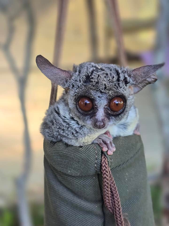 Rhonda the nightape/Galago just can’t help being cute wherever she finds herself.