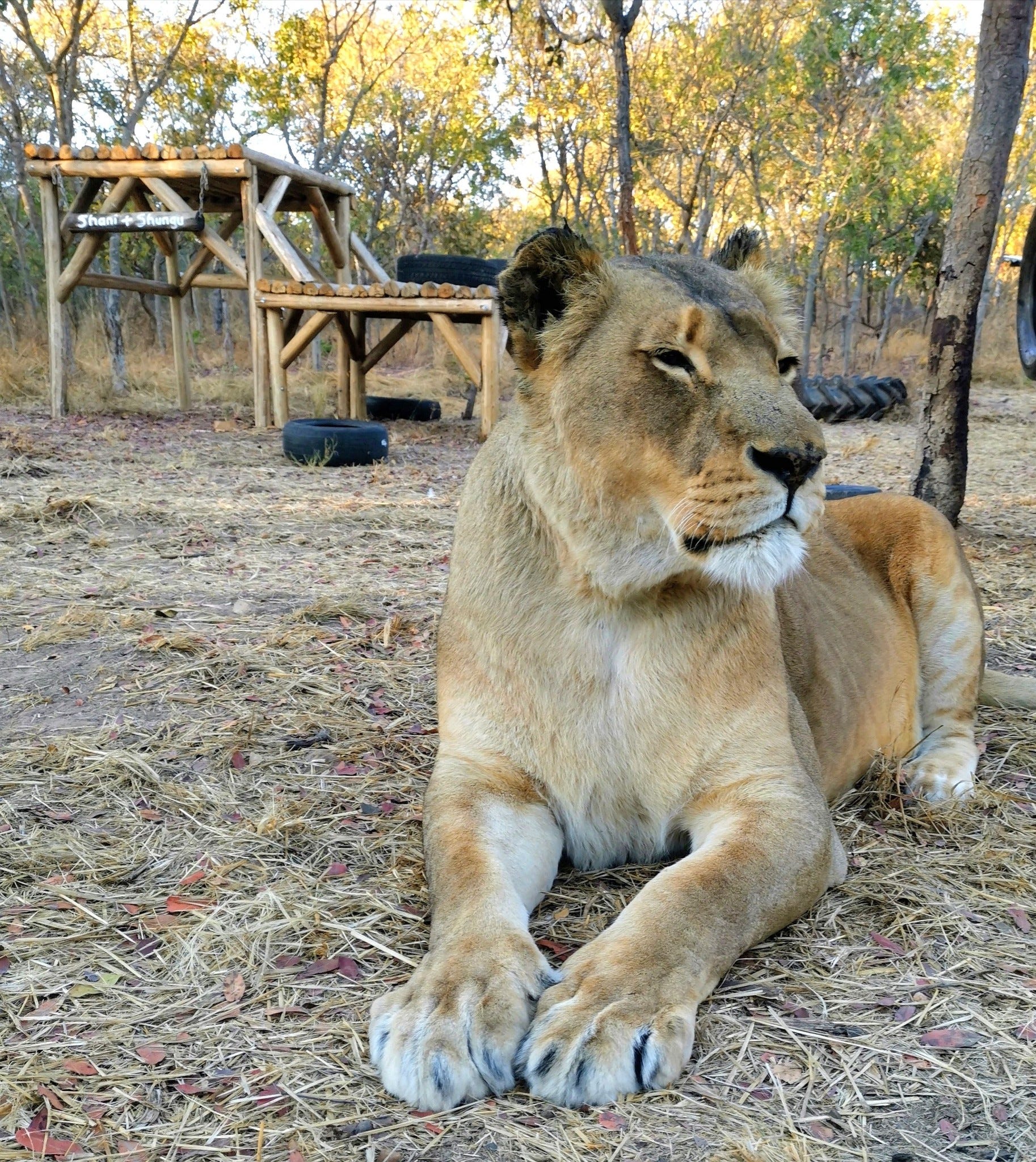 “As rescuers the inevitable cost of living with so much love for and from so many are times of intense and seemingly unbearable grief that eclipse the light and the joy that rescue also brings. When that grief is for a being as magnificent and iconic as our beloved Shani, the lioness who was the very embodiment of power and grace, the adored companion and fierce protecter of gentle Shungu, the sorrow pulls us under like a riptide. Shani was one of our first Twala residents, our beautiful moon gazer, sunbather, ball chaser, midnight roarer, our mercurial, mischievous, golden eyed girl.