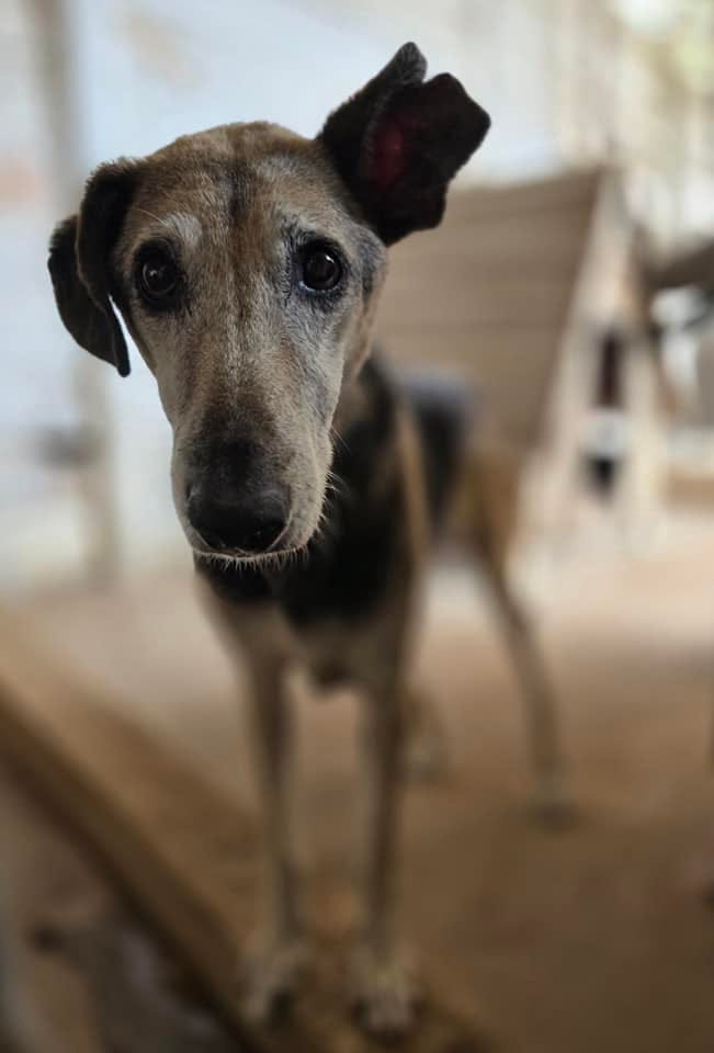 Tiger Too arrived a couple of weeks ago in the boot of a car with a massive chain around his neck, severely malnourished and with pressure sores from sitting and lying permanently on a hard surface, his ears torn and infected, with severe fly strike. He was purchased as a German Shepherd. His owner lives in a nearby town, drives a nice car and was well dressed, so no economic excuses for this blatant neglect. Fortunately for Tiger, he's been welcomed in to the Waggley Tail Club to learn how to be happy and start a new life